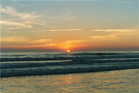 Conil, 12.9. Leicht geschädigt vom Vorabend, ist wieder mal packen angesagt und wir fahren weiter nach Conil. Am Zeltplatz legen wir eine dreistündige Siesta ein, auf unser Akku muss ab und zu wieder aufgeladen werden. Dann an den Strand von Conil, und wieder ein Traum (ich weiß, man sollte dieses Wort wegen Abnutzungsgefahr nicht zu oft gebrauchen, aber in diesem Fall gerechtfertigt - siehe Foto). Ein ewiglanger Sandstrand, die Gischt des Atlantik liegt über den hohen Wellen, die sich immer wieder schäumend brechen. Wir verbringen den Nachmittag vorwiegend mit der Begutachtung (auch der Macho in mir braucht ab und zu Futter) der Chicas, die den Strand hoch und runter flanieren und lassen uns bräunen. Als die Sonne sich dem Horizont nähert, nehmen wir in einer Chiringuito, einer Strandbar, Platz, und geben uns ein wunderschönes Schauspiel. Die Sonne senkt sich langsam, die Wolken am Himmel färben sich rosa, ein leichter Nebel liegt über dem Meer, rechts von der Bucht erhebt sich ein Leuchtturm, der dieses perfekte Bild komplettiert. Der absolute Flash. Zurück im wahren Leben lernen wir in der Bar zwei Österreicherinnen kennen, die eine Woche mit dem Rucksack unterwegs waren und heute hier ihren letzen Abend verbringen. | ||||||||||||||||||||||||||||||||||||||||||||||||||||||||||||||||||||||||||||||||||||||||||||||||||||||